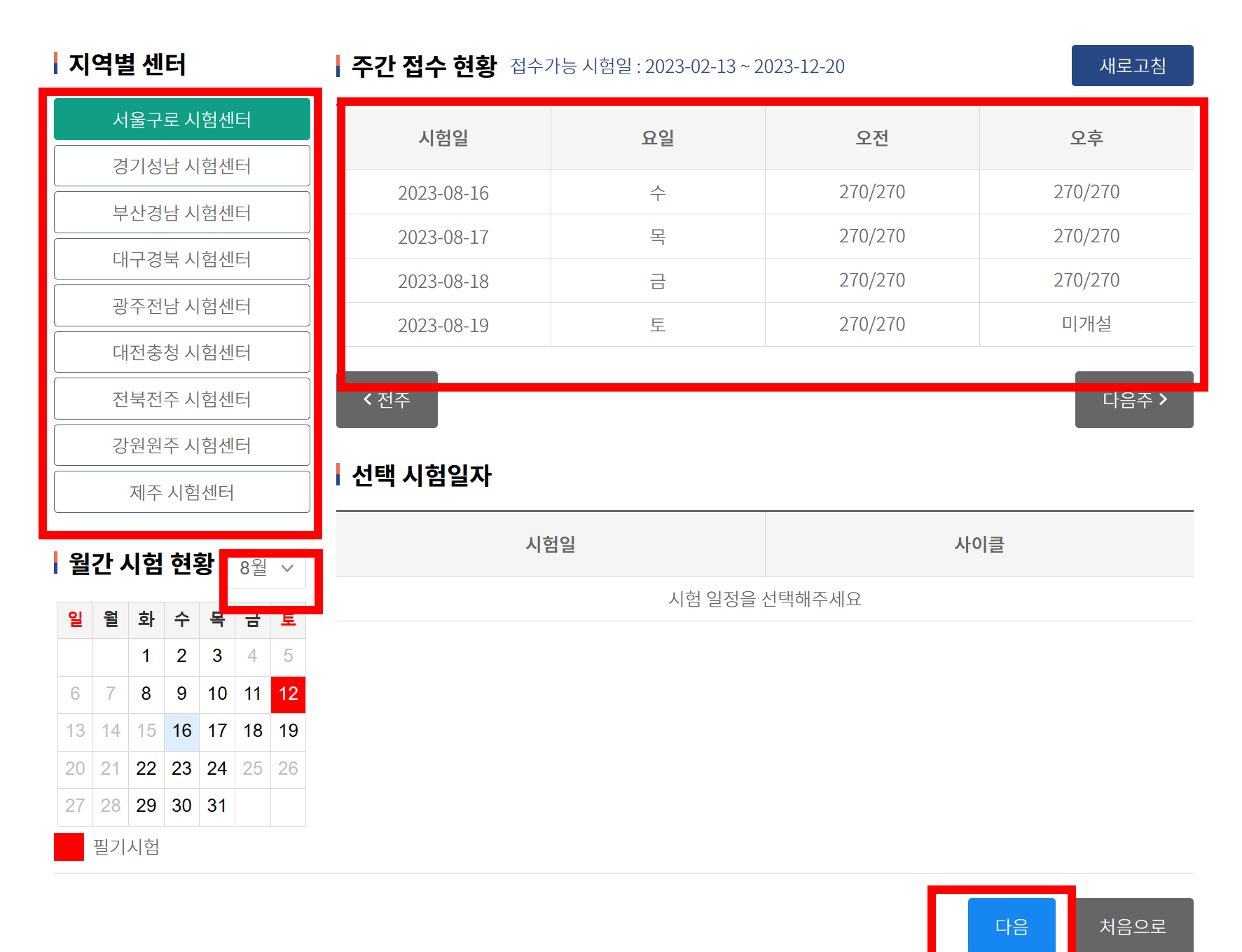 | 원서접수 및 응시수수료 결제 | - 응시원서 접수 시작 10:00부터 접수 마감일까지 접수 가능하며 본인이 응시하고자 하는 시험일 7일전까지 원서접수 하여야 함 - 응시원서 접수 시 부여되는 결제 마감시간까지 응시수수료를 결제해야 접수가 완료됨 |