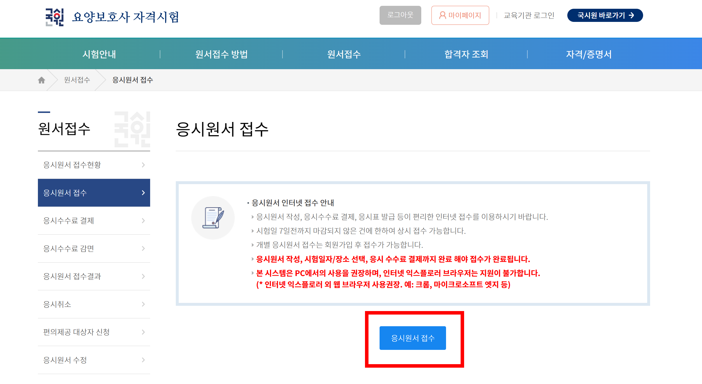 요양보호사 자격시험 홈페이지 바로가기 클릭