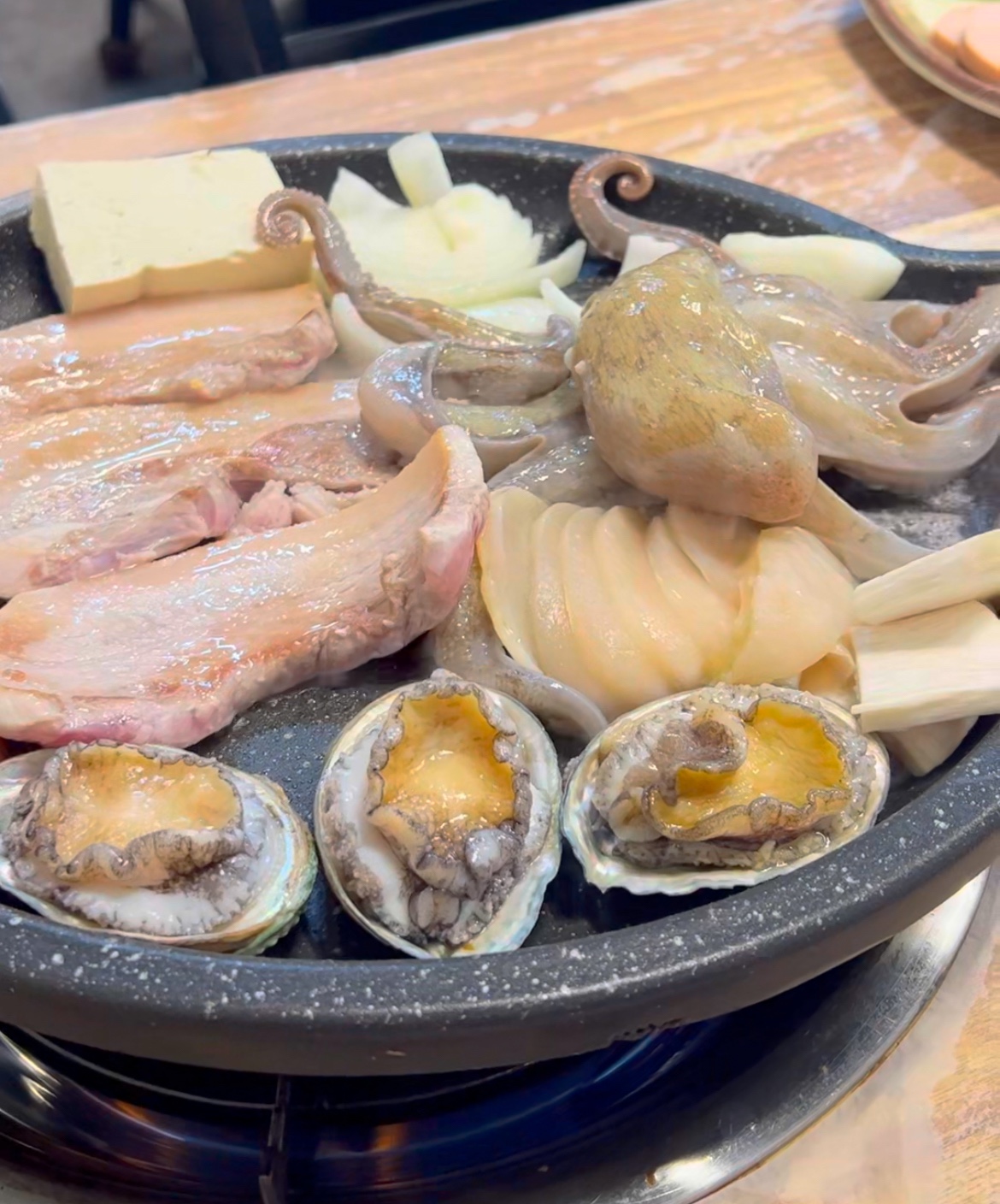싱싱한 문어, 삼겹살, 전복 그리고 김치까지~