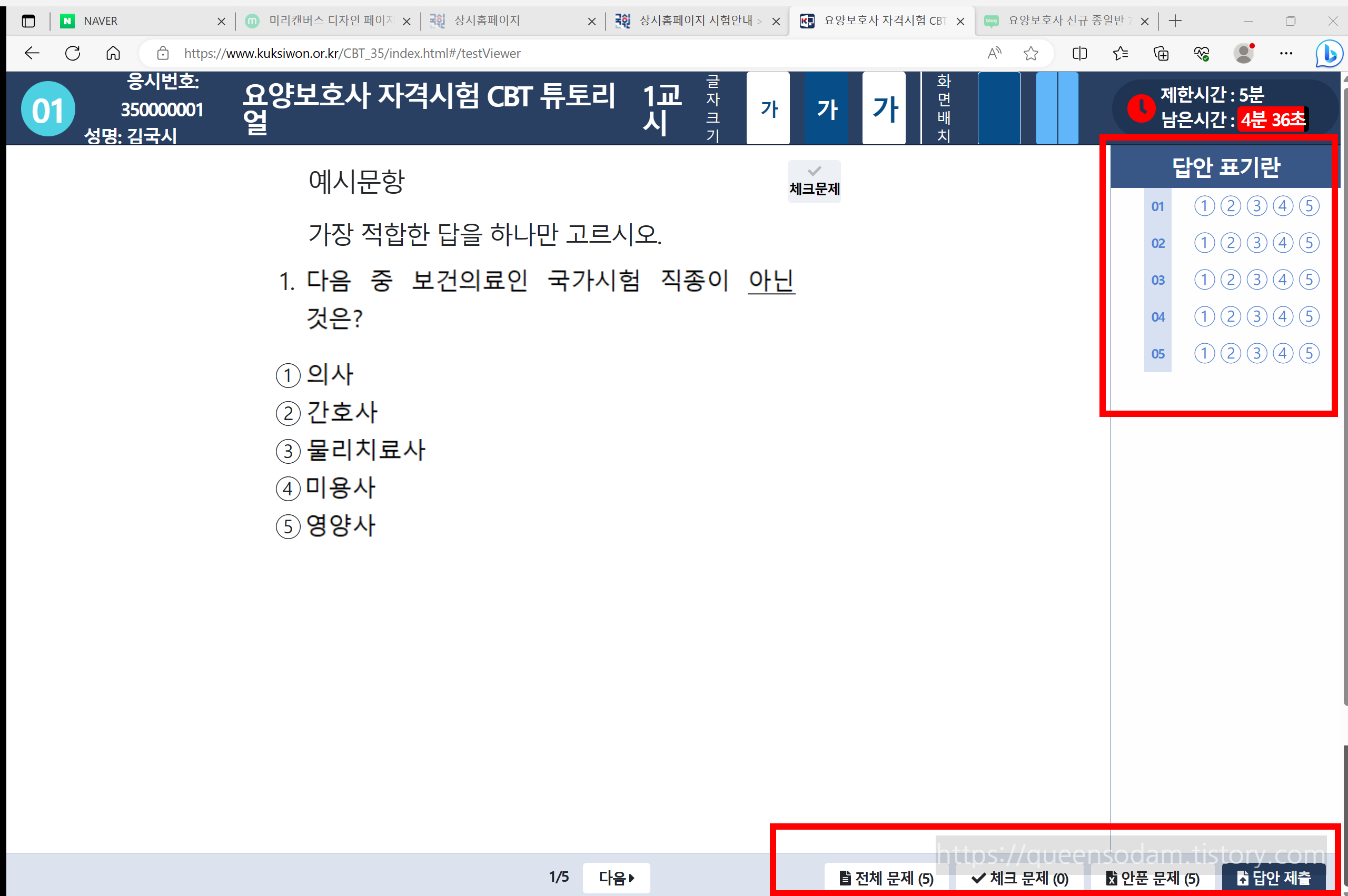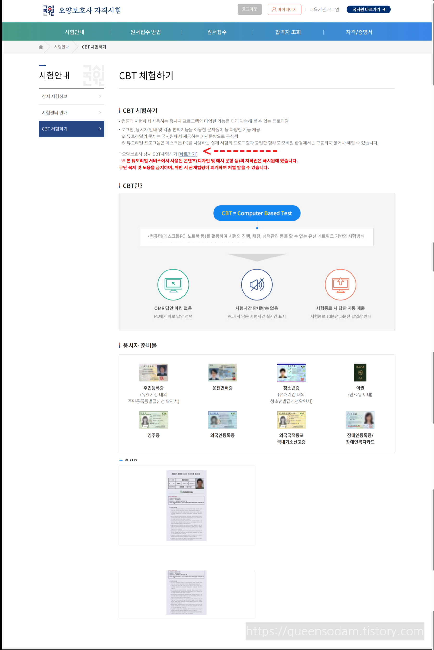 요양보호사 자격시험 CBT 체험하기