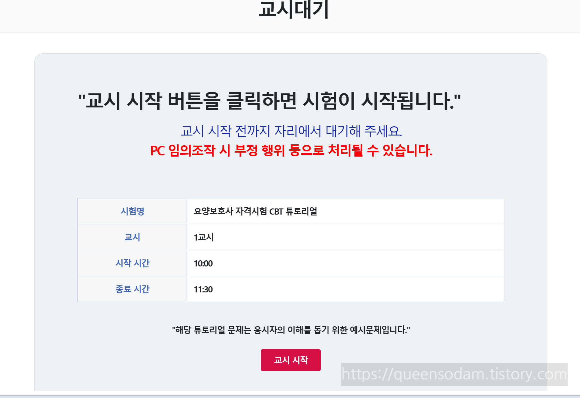 "교시 시작"을 눌러서 시험을 보시면 됩니다.