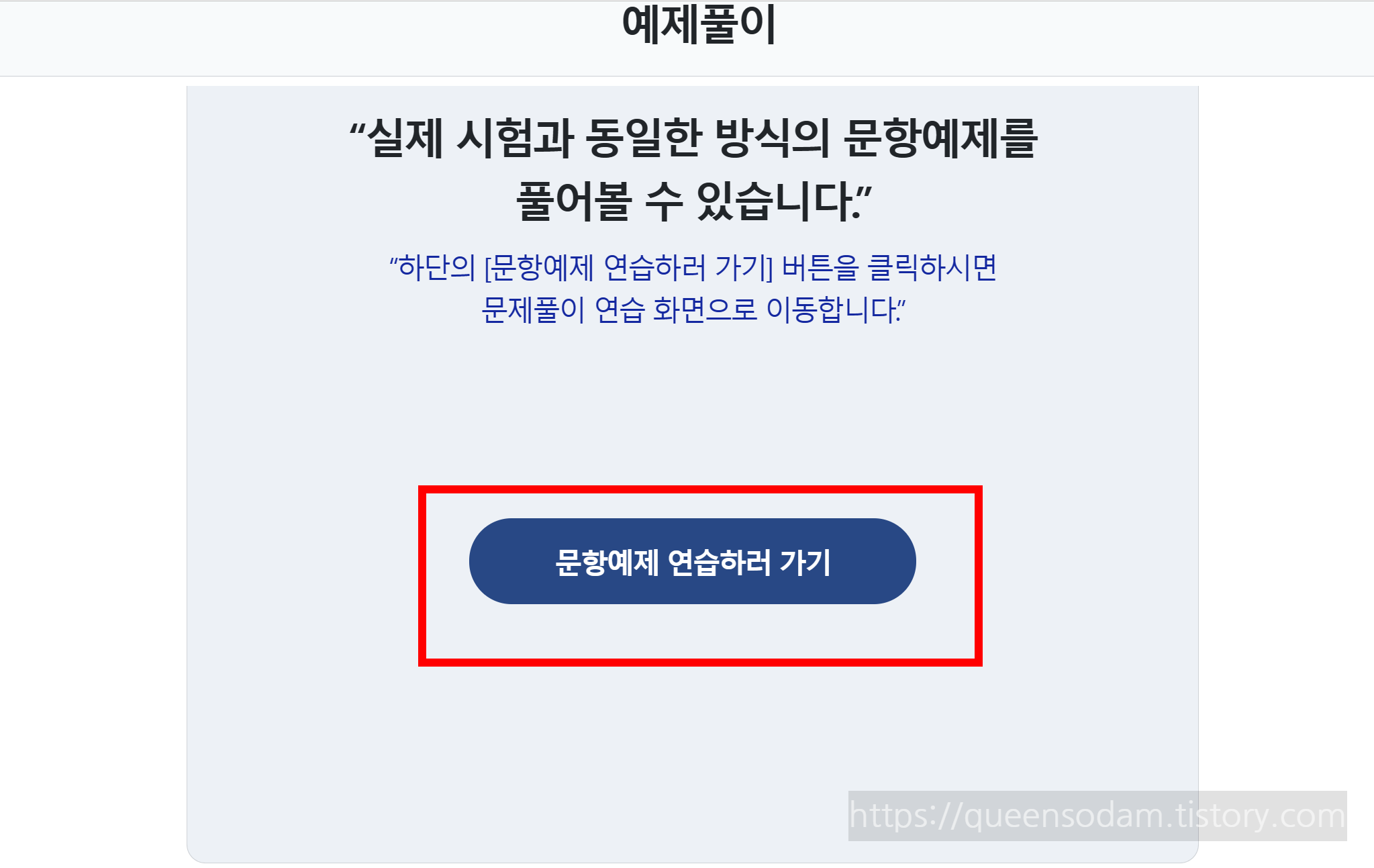 "실제 시험과 동일한 방식의 문항예제를 풀어볼 수 있습니다."