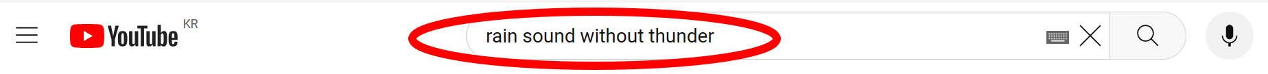 ▶유튜브에 빗소리라고 한글로 쳐도 되지만