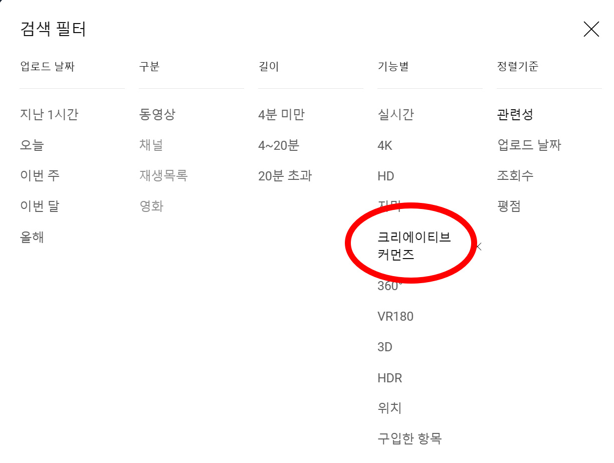 ▶ 검색필터에서 크리에이티브 커먼즈 클릭해 줍니다.