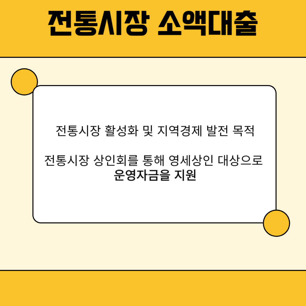 전통시장 활성화 및 지역경제 발전을 목적으로 지자체의 추천을 받은 전통시장 상인회를 통해 영세상인을 대상으로 운영자금을 지원하는 소액 대출사업