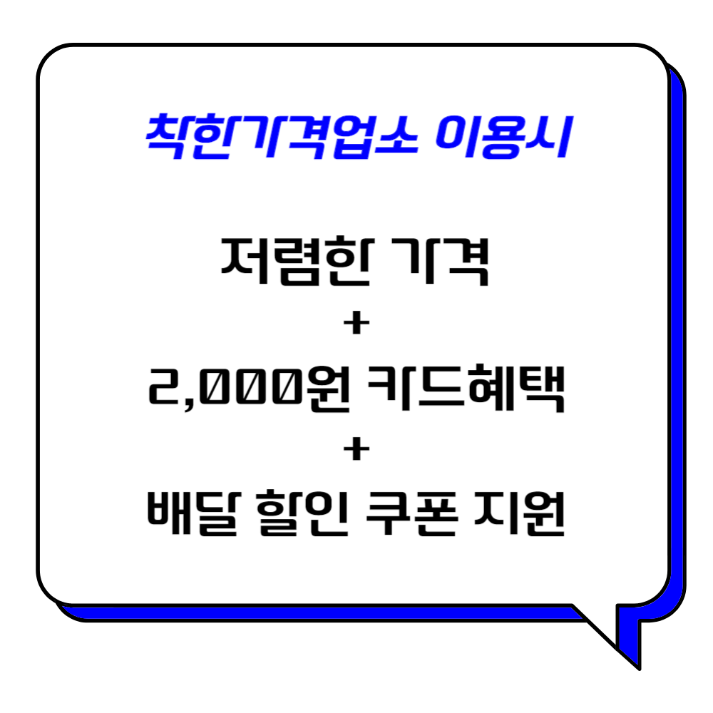또한 민간 배달플랫폼(배달의민족)을 통해 착한가격업소 메뉴 배달 시 할인쿠폰 발급 등 배달료 추가지원이 가능하다.