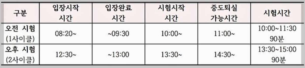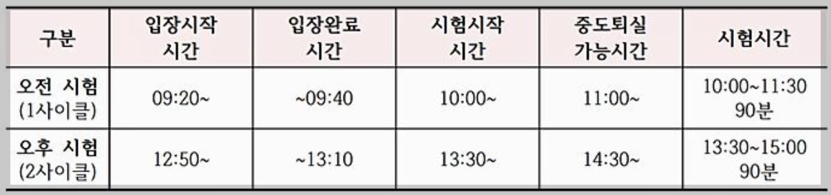 시험은 주 5일(월요일~금요일), 하루 2번(오전, 오후) 시행됩니다.