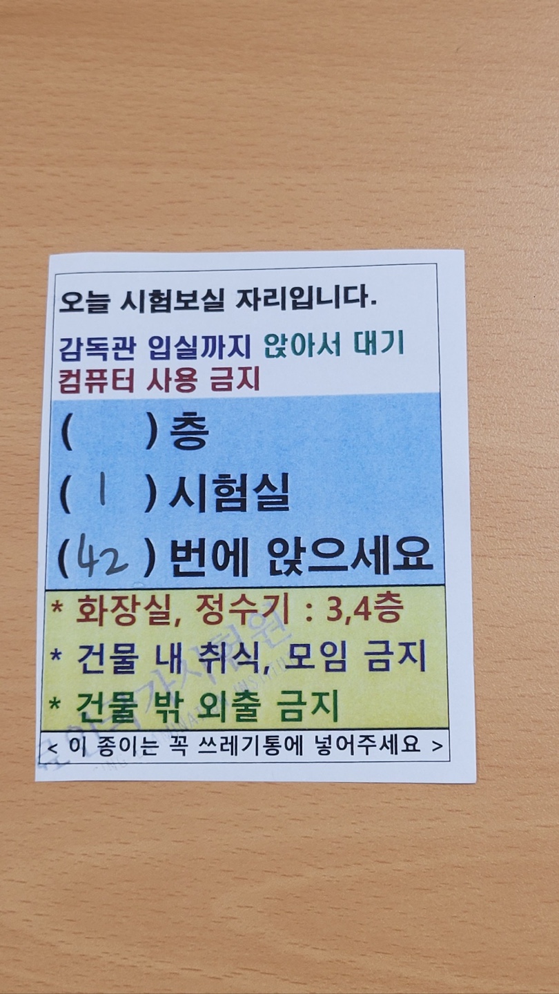감독관 입실까지 앉아서 대기하고 계시면 됩니다.